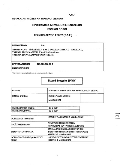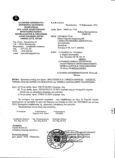ΥΠΟΒΛΗΘΗΚΕ ΝΕΟ ΤΕΧΝΙΚΟ ΔΕΛΤΙΟ ΓΙΑ ΤΙΣ ΠΑΡΑΚΑΜΨΕΙΣ ΓΙΑΝΝΙΤΣΩΝ & ΧΑΛΚΗΔΟΝΑΣ ΩΣ ΕΝΙΑΙΟ ΕΡΓΟ