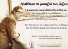 ΑΡΙΔΑΙΑ : ΕΚΔΗΛΩΣΗ-ΑΦΙΕΡΩΜΑ ΣΤΟΝ ΠΟΙΗΤΗ ΜΑΝΟΛΗ ΑΝΑΓΝΩΣΤΑΚΗ ΣΤΟ ΞΕΝΙΤΙΔΕΙΟ ΠΝΕΥΜΑΤΙΚΟ ΚΕΝΤΡΟ Τρίτη, 7 Οκτωβρίου, 2025 - 16:15 Διαβάστε περισσότερα για ΑΡΙΔΑΙΑ : ΕΚΔΗΛΩΣΗ-ΑΦΙΕΡΩΜΑ ΣΤΟΝ ΠΟΙΗΤΗ ΜΑΝΟΛΗ ΑΝΑΓΝΩΣΤΑΚΗ ΣΤΟ ΞΕΝΙΤΙΔΕΙΟ ΠΝΕΥΜΑΤΙΚΟ ΚΕΝΤΡΟ
