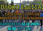 ΜΠΛΟΚΟ ΕΔΕΣΣΑΣ ΚΑΛΕΣΜΑ ΔΙΑΜΑΡΤΥΡΙΑΣ ΣΕ ΟΛΟΥΣ ΣΤΗΝ ΝΟΜΑΡΧΙΑ 12-12-2025 Πέμπτη, 11 Δεκεμβρίου, 2025 - 19:57 Διαβάστε περισσότερα για ΜΠΛΟΚΟ ΕΔΕΣΣΑΣ ΚΑΛΕΣΜΑ ΔΙΑΜΑΡΤΥΡΙΑΣ ΣΕ ΟΛΟΥΣ ΣΤΗΝ ΝΟΜΑΡΧΙΑ 12-12-2025