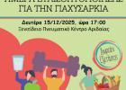 ΑΡΙΔΑΙΑ ; ΕΚΔΗΛΩΣΗ ΟΜΙΛΙΑ ΔΡΑΣΗ ΜΕ ΔΩΡΕΑΝ ΕΞΕΤΑΣΕΙΣ ΓΙΑ ΤΗΝ ΠΑΧΥΣΑΡΚΙΑ Τετάρτη, 10 Δεκεμβρίου, 2025 - 10:52 Διαβάστε περισσότερα για ΑΡΙΔΑΙΑ ; ΕΚΔΗΛΩΣΗ ΟΜΙΛΙΑ ΔΡΑΣΗ ΜΕ ΔΩΡΕΑΝ ΕΞΕΤΑΣΕΙΣ ΓΙΑ ΤΗΝ ΠΑΧΥΣΑΡΚΙΑ
